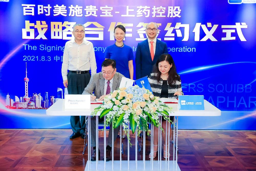 8月3日,在上海自由貿(mào)易試驗區(qū)臨港新片區(qū)管委會專職副主任武偉的見證下,百時美施貴寶和上藥控股在上海舉行了隆重的戰(zhàn)略合作簽約儀式。百時美施貴寶中國大陸及香港地區(qū)總經(jīng)理陳思淵、高級副總裁及成熟產(chǎn)品業(yè)務(wù)及商業(yè)運作管理負責(zé)人傅旭東、副總裁及中國和亞洲區(qū)財務(wù)部兼行政部負責(zé)人李平及施貴寶管理團隊;上海醫(yī)藥執(zhí)行董事、副總裁、上藥控股總經(jīng)理李永忠,上藥控股副總經(jīng)理宋潞潞等共同參與簽約儀式。