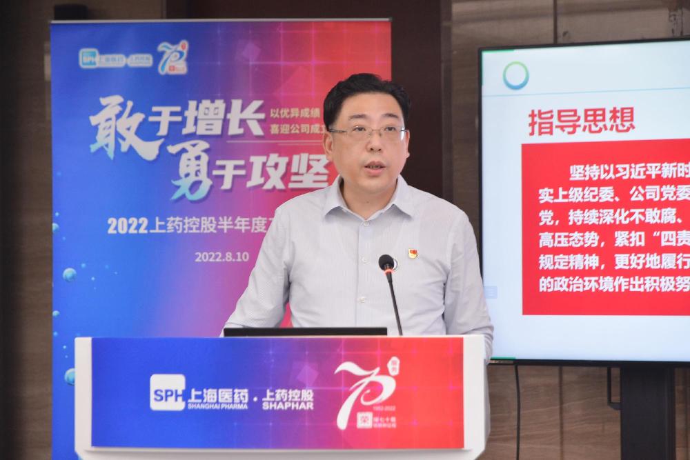 8月10日下午,上藥控股召開(kāi)題為“七十榮光,奮楫篤行”的2022年黨風(fēng)廉政建設(shè)大會(huì)暨第六屆合規(guī)文化建設(shè)論壇,上海醫(yī)藥集團(tuán)紀(jì)委書(shū)記余衛(wèi)東,上海醫(yī)藥集團(tuán)紀(jì)委副書(shū)記吳軍出席會(huì)議。