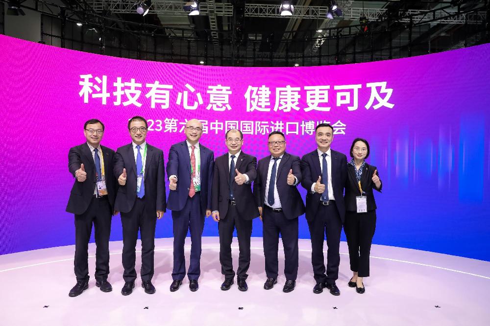 2023年11月7日,中國上海,第六屆進(jìn)博會(huì)期間,雅培新品芬悅寧正式亮相,上海醫(yī)藥將作為該款新藥的進(jìn)口總經(jīng)銷商,幫助中國患者提高對(duì)該藥物的可及性。雅培藥品業(yè)務(wù)部門副總裁兼中國區(qū)總經(jīng)理湯興斌,上海醫(yī)藥執(zhí)行董事兼執(zhí)行總裁李永忠及雙方管理團(tuán)隊(duì)出席發(fā)布會(huì)現(xiàn)場,共同見證芬悅寧中國首秀。